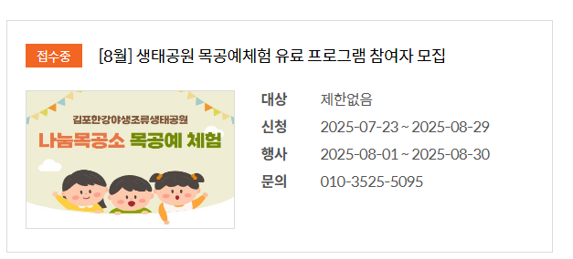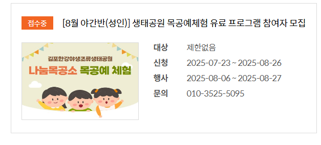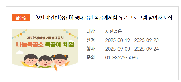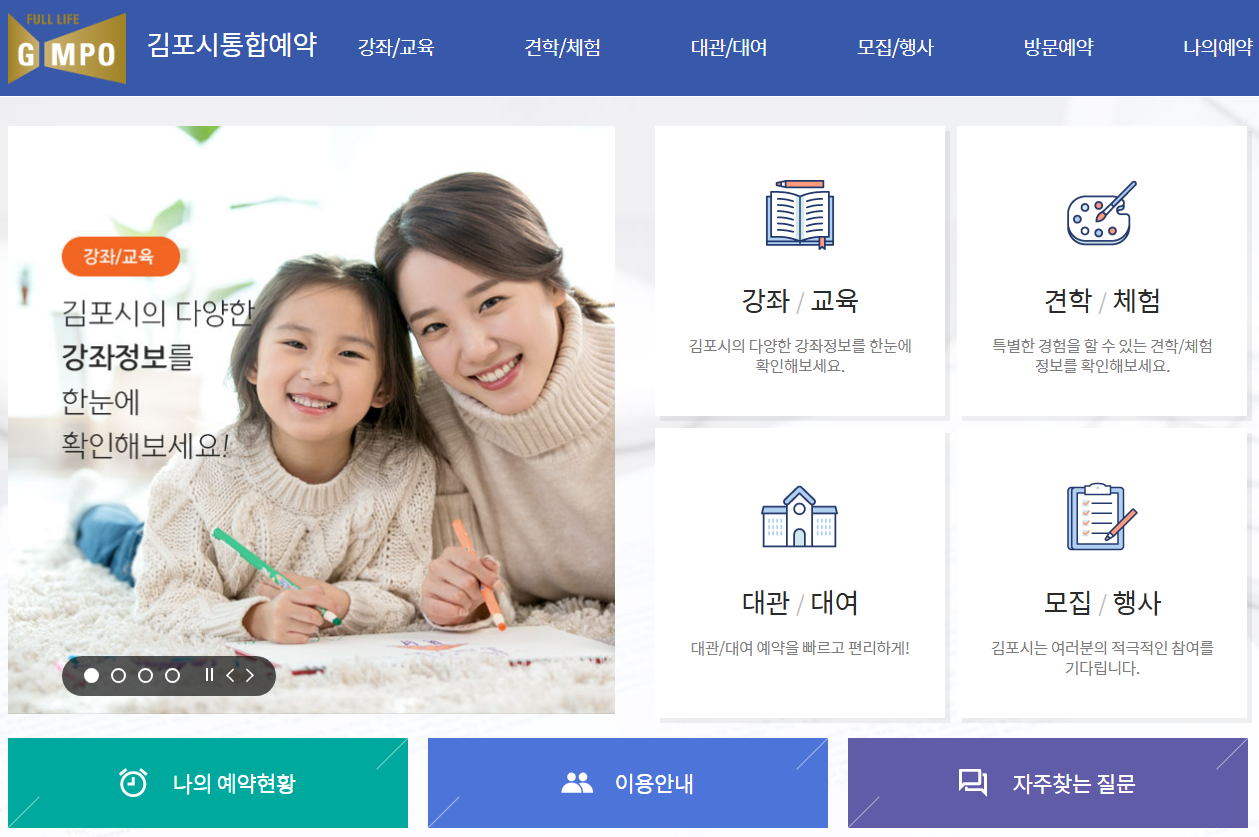 - 통합예약시스템: 각종 교육, 체험, 대관 서비스 온라인 예약