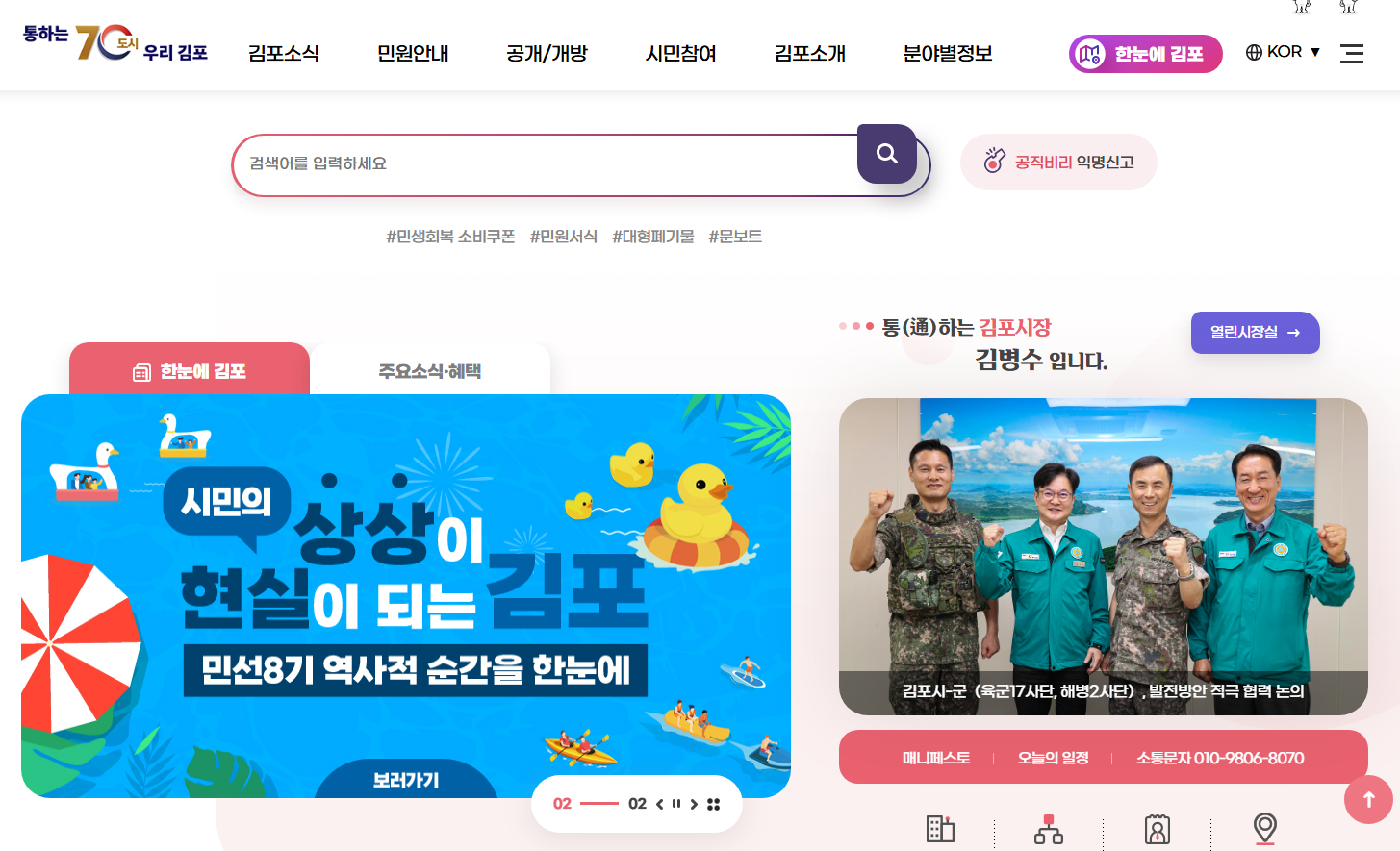 김포시청 홈페이지: 시민들을 위한 종합 디지털 플랫폼 살펴보기. 현대 지방행정에서 온라인 플랫폼의 중요성이 커지면서 김포시청 홈페이지는 시민과 행정기관을 연결하는 핵심 창구 역할을 하고 있다. 디지털 정부 서비스가 확산되는 상황에서 김포시의 온라인 서비스 현황과 특징을 알아보고자 한다.