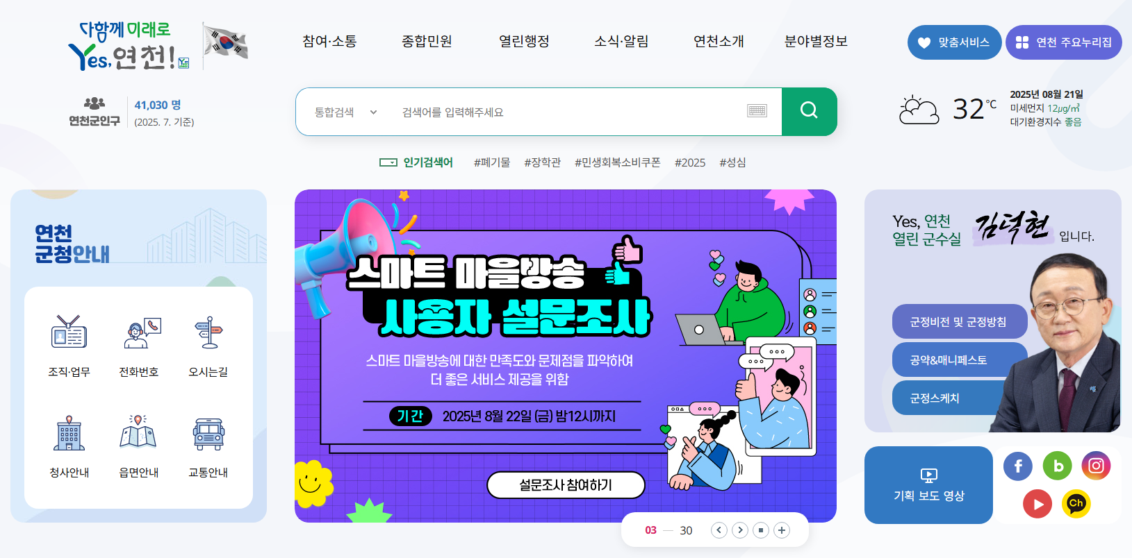 연천군청 홈페이지는 다양한 행정 서비스를 제공합니다: