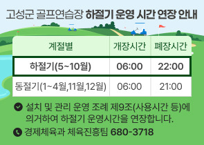 - 고성군청 본관 1층: 365일 08:00~22:00 운영