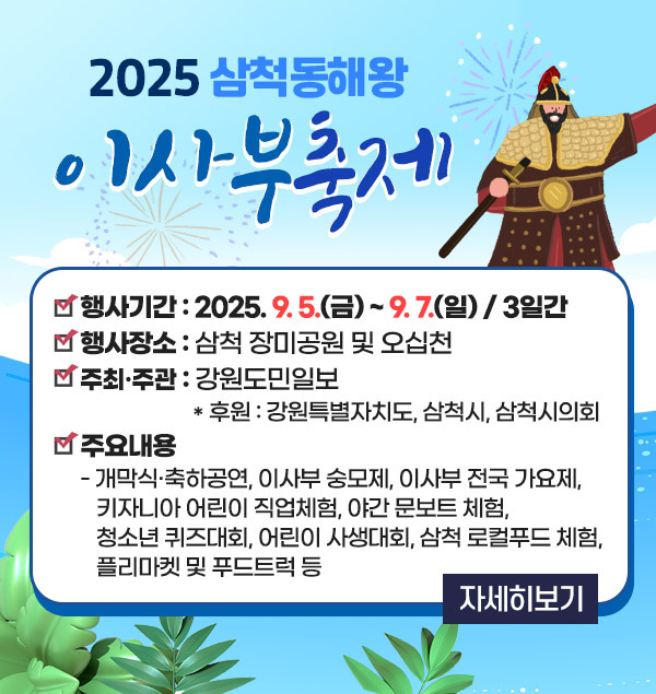 - 이사부 길: 강원특별자치도 삼척시 새천년도로 (문의: 033-570-3072)