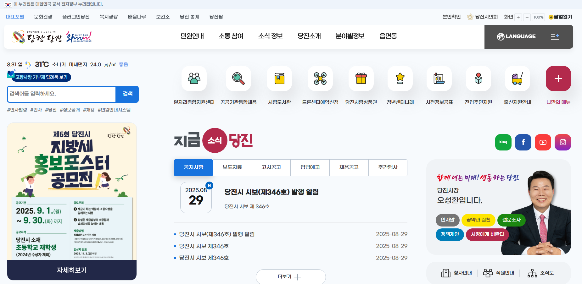 당진시청 홈페이지는 다음과 같은 정보를 체계적으로 제공합니다: