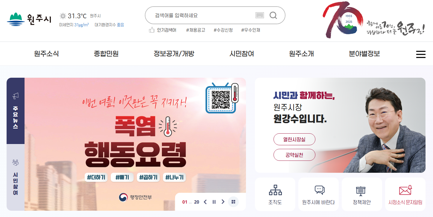 원주시청 홈페이지