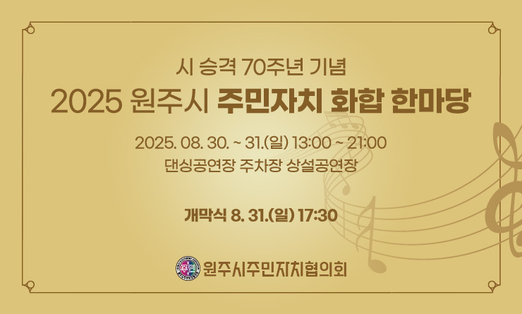 - 원주소식: 뉴스/소식, 새소식, 문화행사, 읍면동 소식, 반상회 소식지 등을 제공