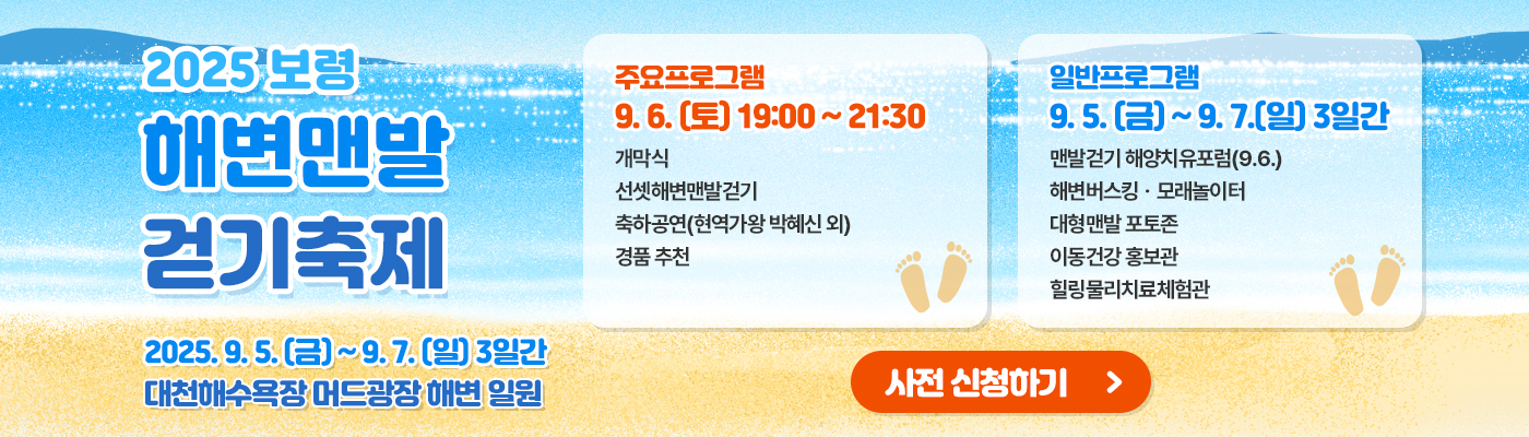 보령시청은 해수욕장경영과를 별도로 운영하며 대천운영팀, 무창포운영팀을 통해 해양관광 서비스를 제공하고 있습니다. 또한 '2025 보령 해변 맨발 걷기 축제' 등 다양한 문화관광 행사를 개최하고 있습니다.