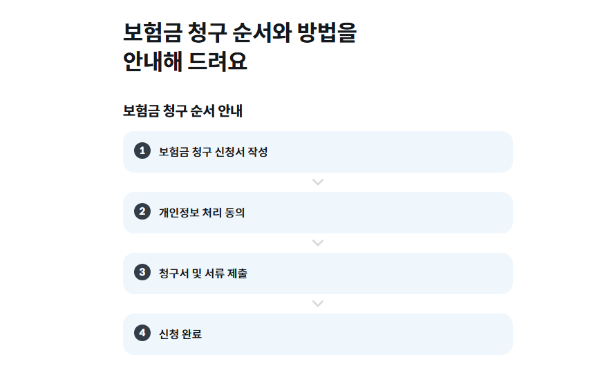 보험금 청구는 다음과 같은 순서로 진행됩니다.