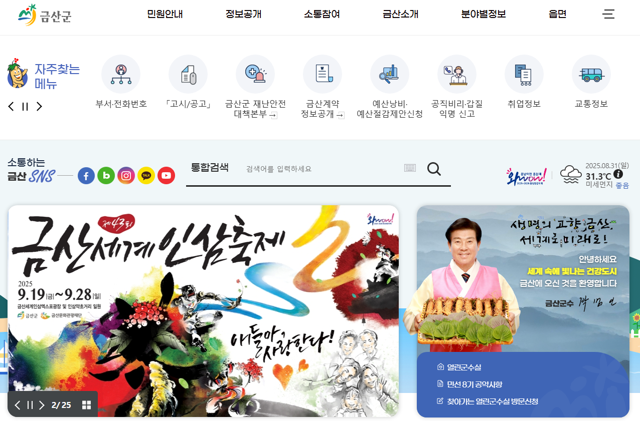 금산군청 홈페이지는 단순한 정보 제공을 넘어서 주민들의 실질적인 생활 편의와 지역 발전을 위한 종합적인 디지털 플랫폼 역할을 수행하고 있습니다. 지속적인 업데이트와 개선을 통해 더욱 효율적이고 사용자 친화적인 서비스를 제공하고 있습니다.