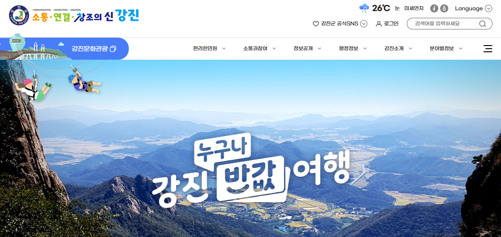 강진군청 홈페이지는 강진군의 공식 행정 포털 사이트로서 군민과 방문객들에게 종합적인 행정서비스를 제공하는 온라인 플랫폼입니다. 현재 강진군청은 전라남도 강진군 강진읍 탐진로 111번지에 위치하고 있으며, 강진원 군수가 3선째 군정을 이끌고 있습니다. 홈페이지는 민원 서비스부터 관광 정보, 문화 콘텐츠에 이르기까지 다양한 분야의 정보를 체계적으로 제공하고 있습니다.