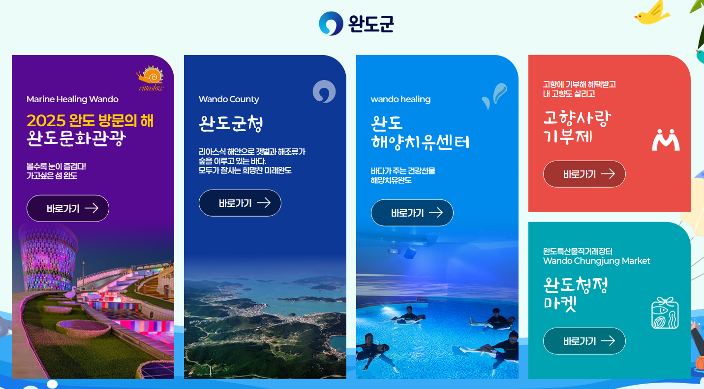 - 관광정책과: 완도의 관광산업 발전을 위한 정책 수립 및 시행