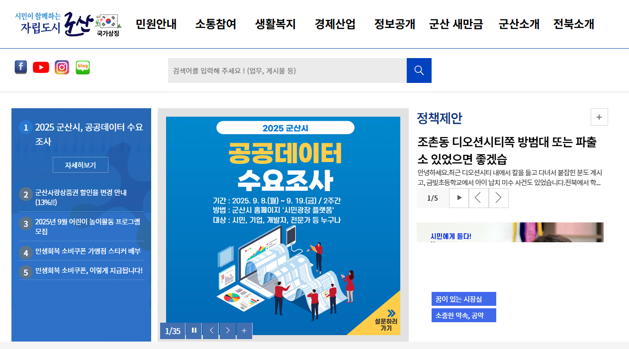 군산시청 홈페이지