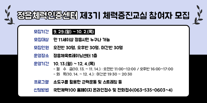 - 제18회 정읍 구절초 꽃축제: 10월 14일~26일, 구절초 지방정원에서 개최