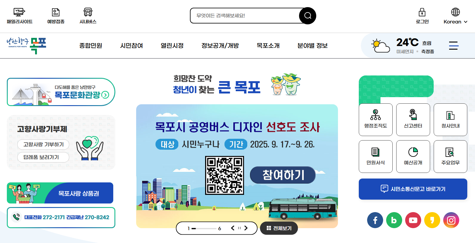 목포시는 시민의 목소리를 시정에 반영하기 위한 다양한 온라인 소통 창구를 운영하고 있습니다 :