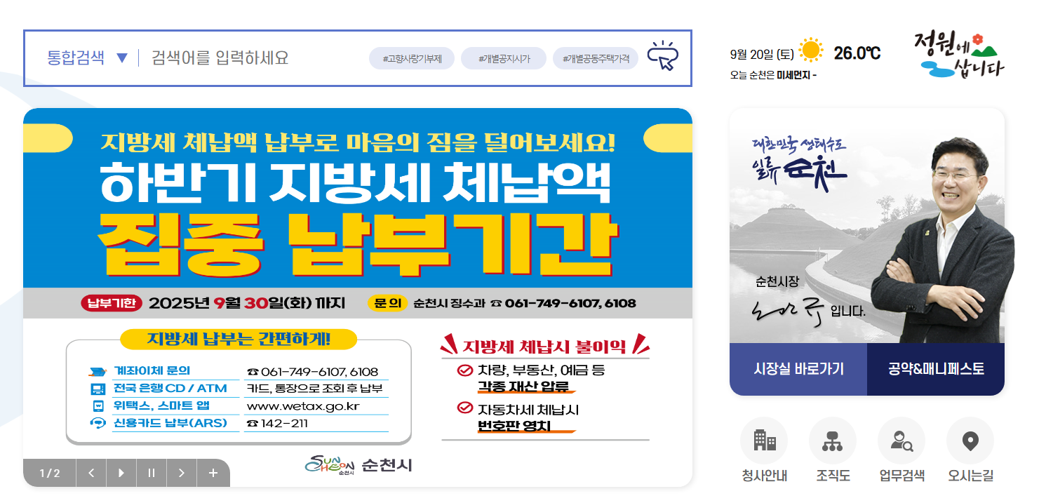 순천시청 홈페이지는 종합적인 행정 서비스를 제공하는 다양한 기능을 갖추고 있다: