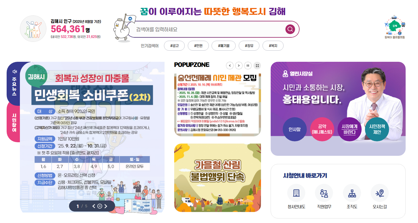 김해시청 홈페이지