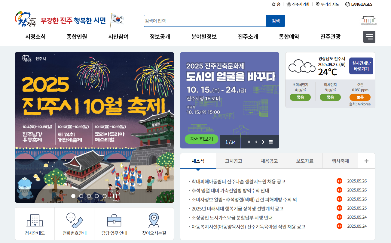 진주시청 홈페이지