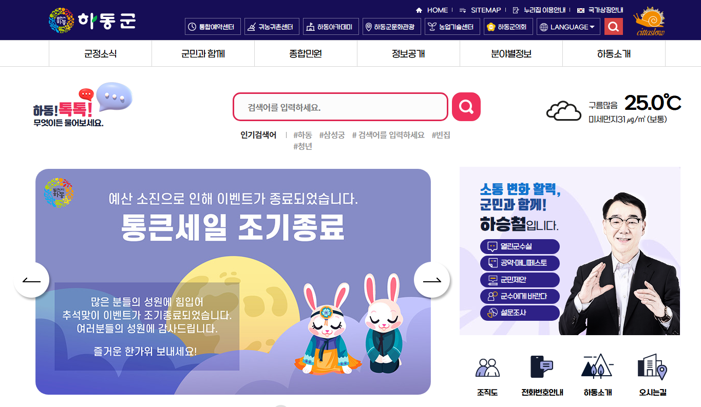 하동군청 홈페이지