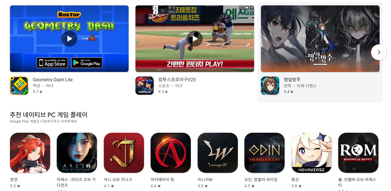 플레이스토어는 1백만 개 이상의 앱과 게임을 제공하며, 사용자 리뷰와 평점 시스템을 통해 앱의 품질을 확인할 수 있습니다. 또한 스크린샷과 상세한 앱 정보를 제공하여 다운로드 전 충분한 정보를 얻을 수 있습니다.