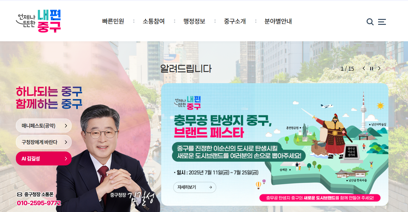 홈페이지는 모바일 기기에서도 최적화되어 있어 언제 어디서나 편리하게 정보를 확인하고 민원 업무를 처리할 수 있습니다. 또한 중구청의 공식 인스타그램(@jungguseoul)을 통해서도 다양한 소식을 접할 수 있습니다.