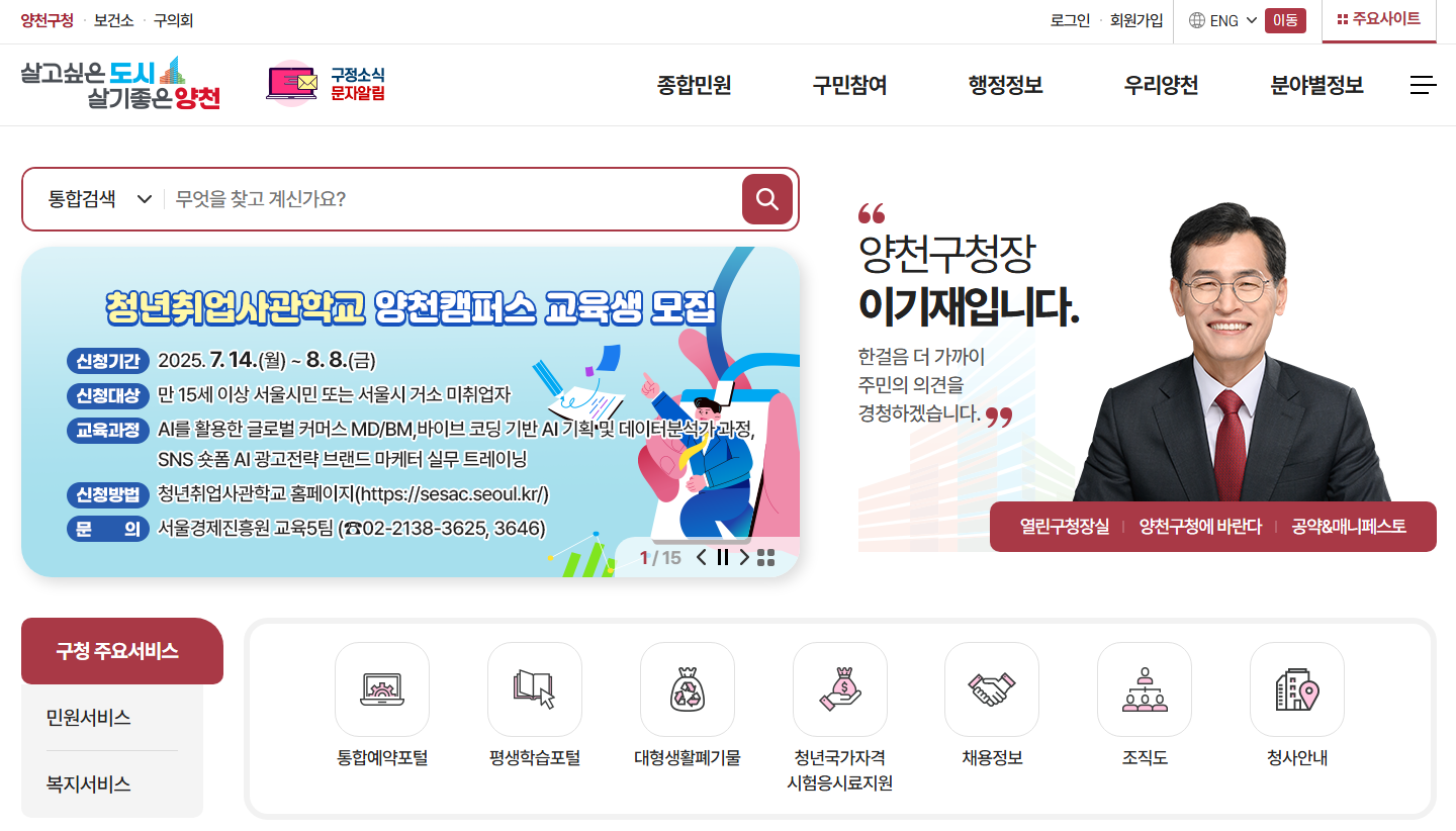 양천구청 홈페이지