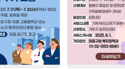 마포구청 홈페이지에서는 주민들을 위한 다양한 복지 서비스와 지원 프로그램에 대한 정보를 제공합니다. 주민생활과 밀접한 정보들을 쉽게 찾을 수 있도록 구성되어 있으며, 지역 주민센터 운영 정보 및 지원 사업 공지 등도 확인할 수 있습니다.