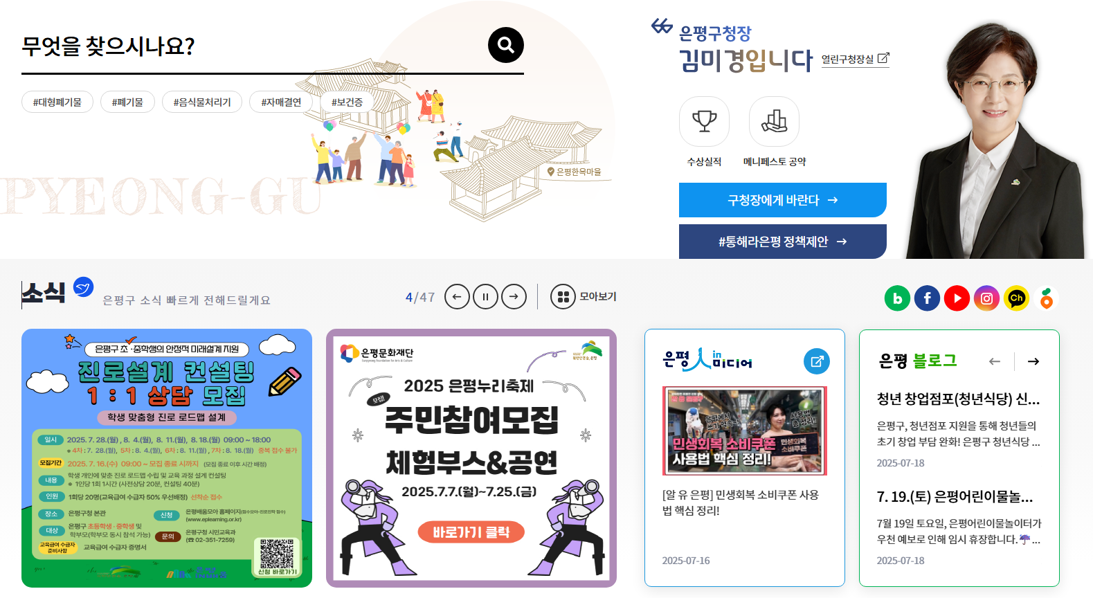 은평구청 홈페이지 주요 서비스