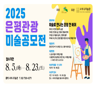 은평누리축제, 관광 미술 공모전 등 다양한 문화 행사 정보도 홈페이지를 통해 확인할 수 있습니다. 주민 참여 모집 안내와 체험 부스 운영 등 지역 문화 활동에 적극 참여할 수 있는 기회를 제공합니다.