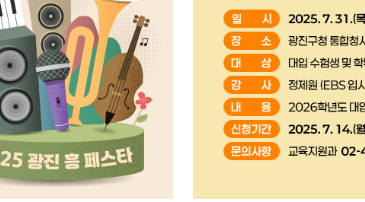 홈페이지 메인 페이지에서는 광진구의 최신 소식을 실시간으로 확인할 수 있습니다. 2025년 7월 기준으로 다음과 같은 주요 공지사항들이 게시되어 있습니다: