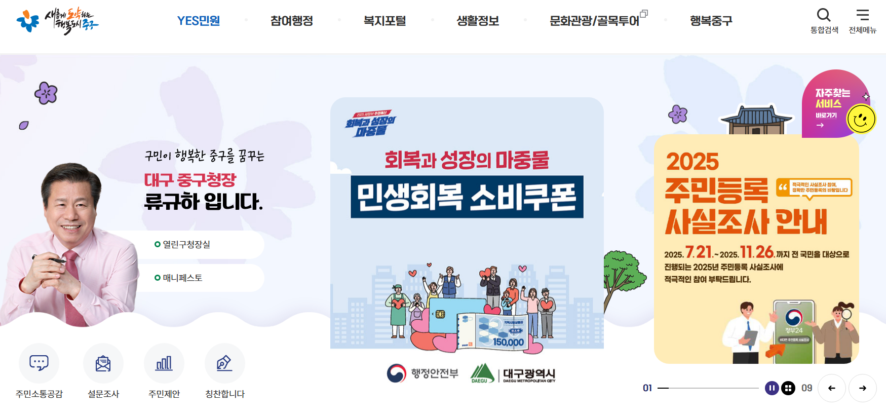 대구 중구청 홈페이지 기본 정보