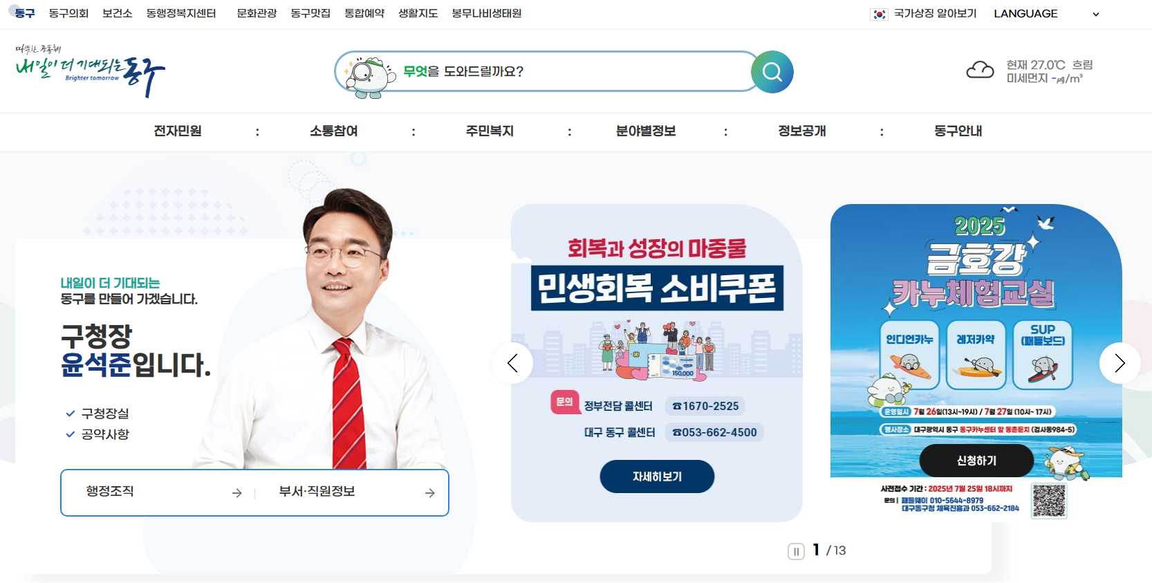 대구광역시 동구청 홈페이지는 동구 지역 주민들에게 편리한 행정서비스를 제공하고 지역 정보를 체계적으로 안내하는 핵심 플랫폼입니다. 디지털 시대에 발맞춰 구축된 이 온라인 창구를 통해 주민들은 언제 어디서나 필요한 행정 업무를 처리하고 지역 소식을 확인할 수 있습니다. 본 글에서는 대구 동구청 홈페이지의 주요 기능과 서비스, 그리고 주민 생활에 미치는 영향에 대해 자세히 살펴보겠습니다.