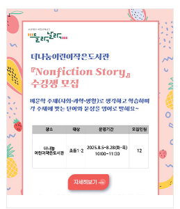 희망교육지구 사업을 비롯한 다양한 교육 프로그램 정보를 홈페이지를 통해 확인할 수 있습니다. 더나눔어린이·초량이바구 작은도서관의 여름방학 프로그램과 같은 문화 교육 서비스도 온라인으로 신청 가능합니다.