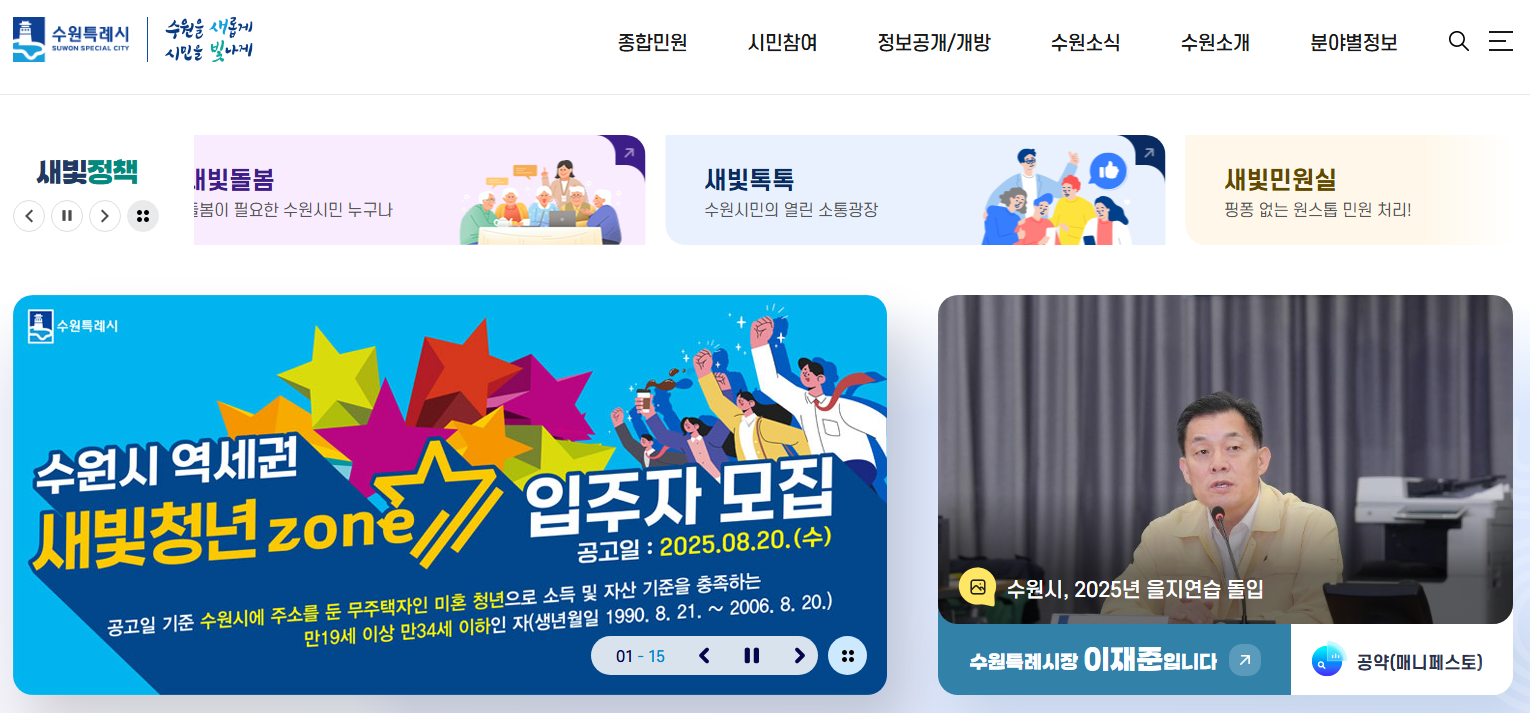 수원시청 홈페이지는 다음과 같은 핵심 서비스들을 제공한다: