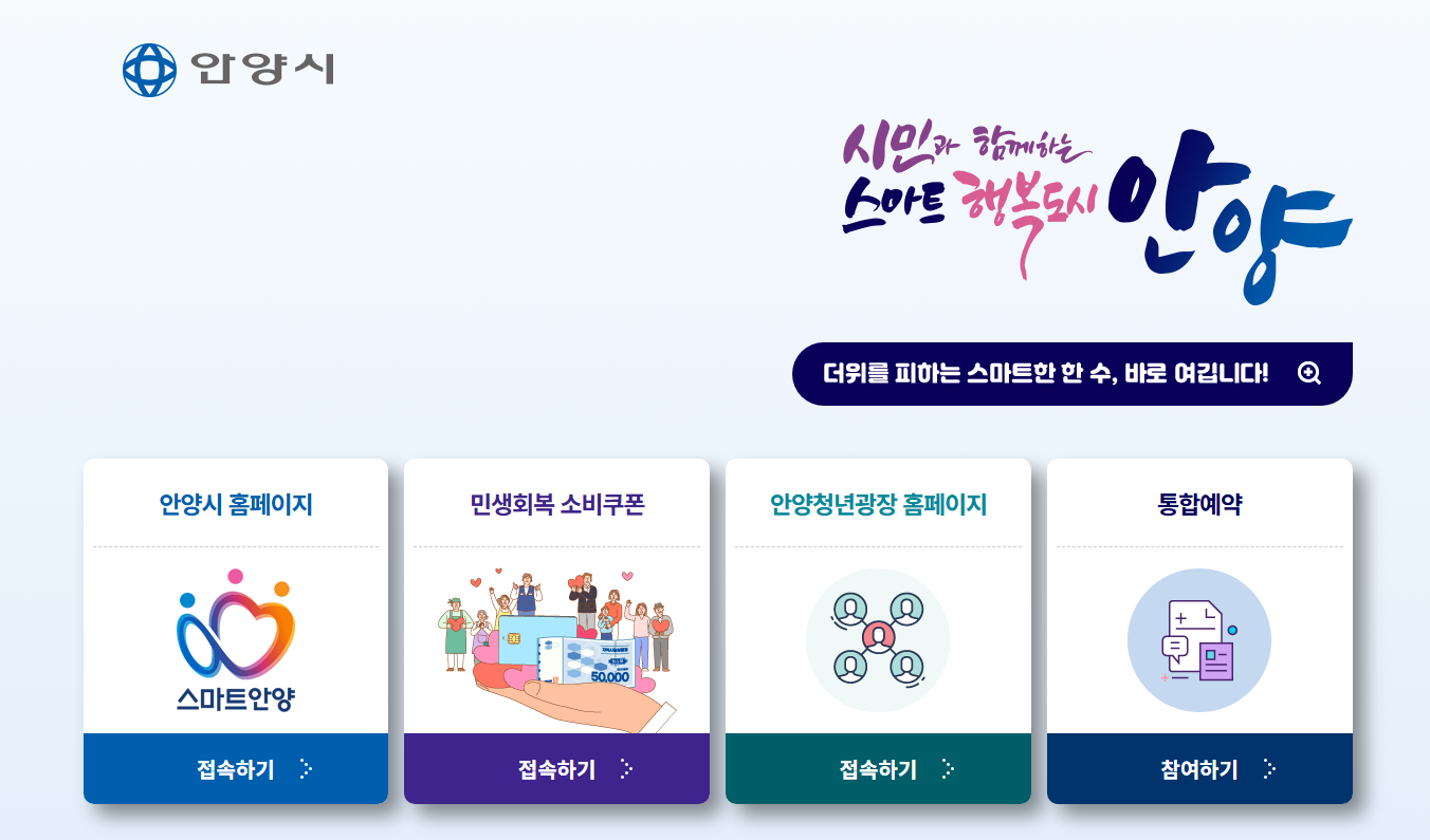 안양시청 홈페이지는 안양시의 모든 행정 서비스를 온라인으로 제공하는 종합 정보 플랫폼입니다. 경기도 안양시 동안구 시민대로 235에 위치한 안양시청의 공식 홈페이지로, 시민들이 언제 어디서나 편리하게 행정 서비스를 이용할 수 있도록 설계되었습니다.